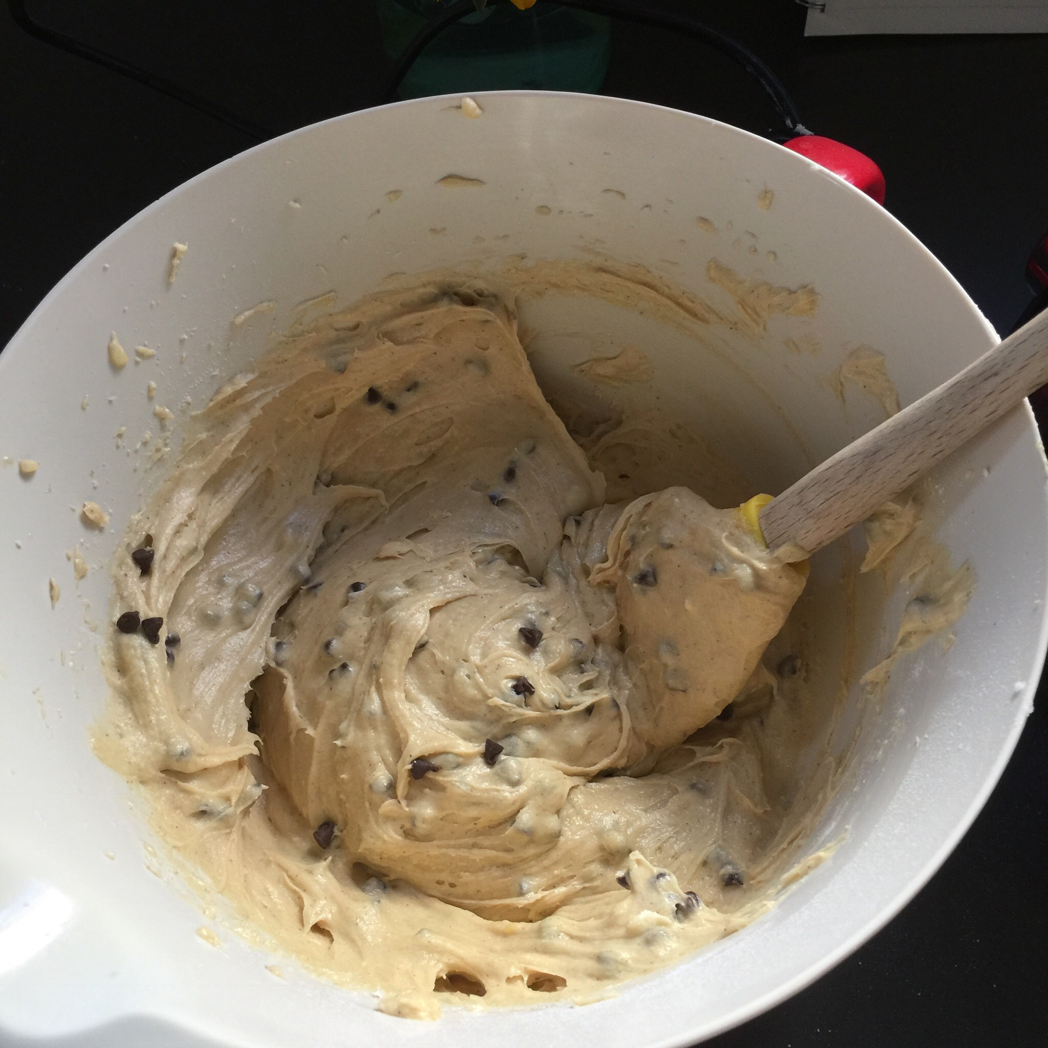 Step Six: Mix in up to 1 cup of mini chocolate chips. I prefer the minis but you can get creative here! PB chips would also taste real good!
