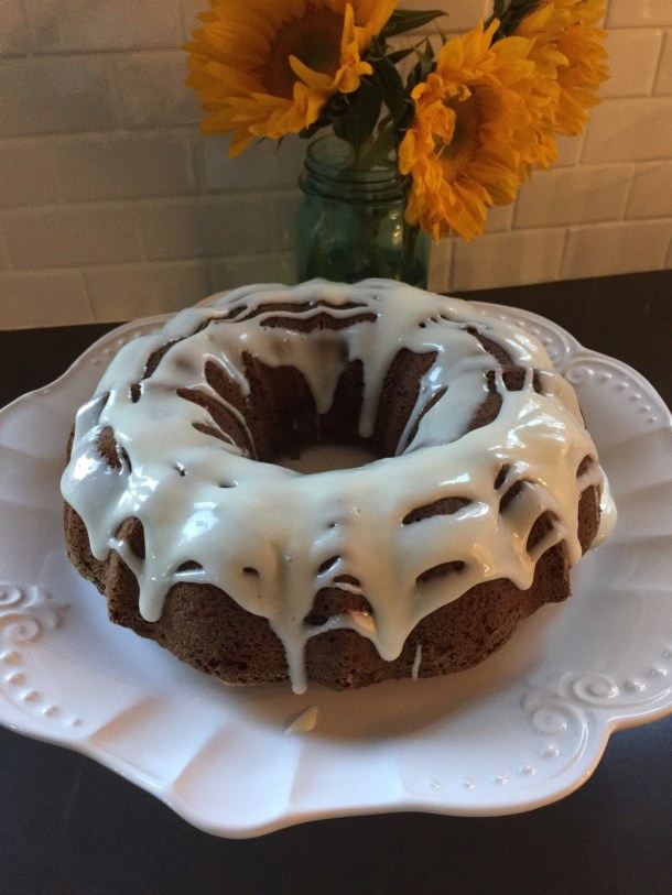 Step Eight: Prepare the bundt pan by coating with crisco and flour. I use a small baggy over my hand and smooth the crisco all over the pan. Then, put a few spoonfuls of flour in and shake it around until covered. You could use non-stick spray but when I did that my cake did not come out of the pan- equally as delicious- less pretty- maybe you’ll have better luck!